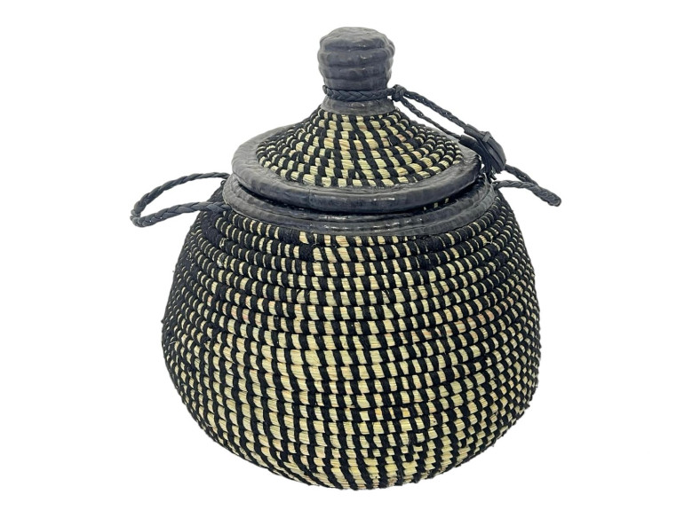 This handwoven wicker basket combines craftsmanship and elegance. Its black and natural two-tone design adds an ethnic and authentic touch to your interior.