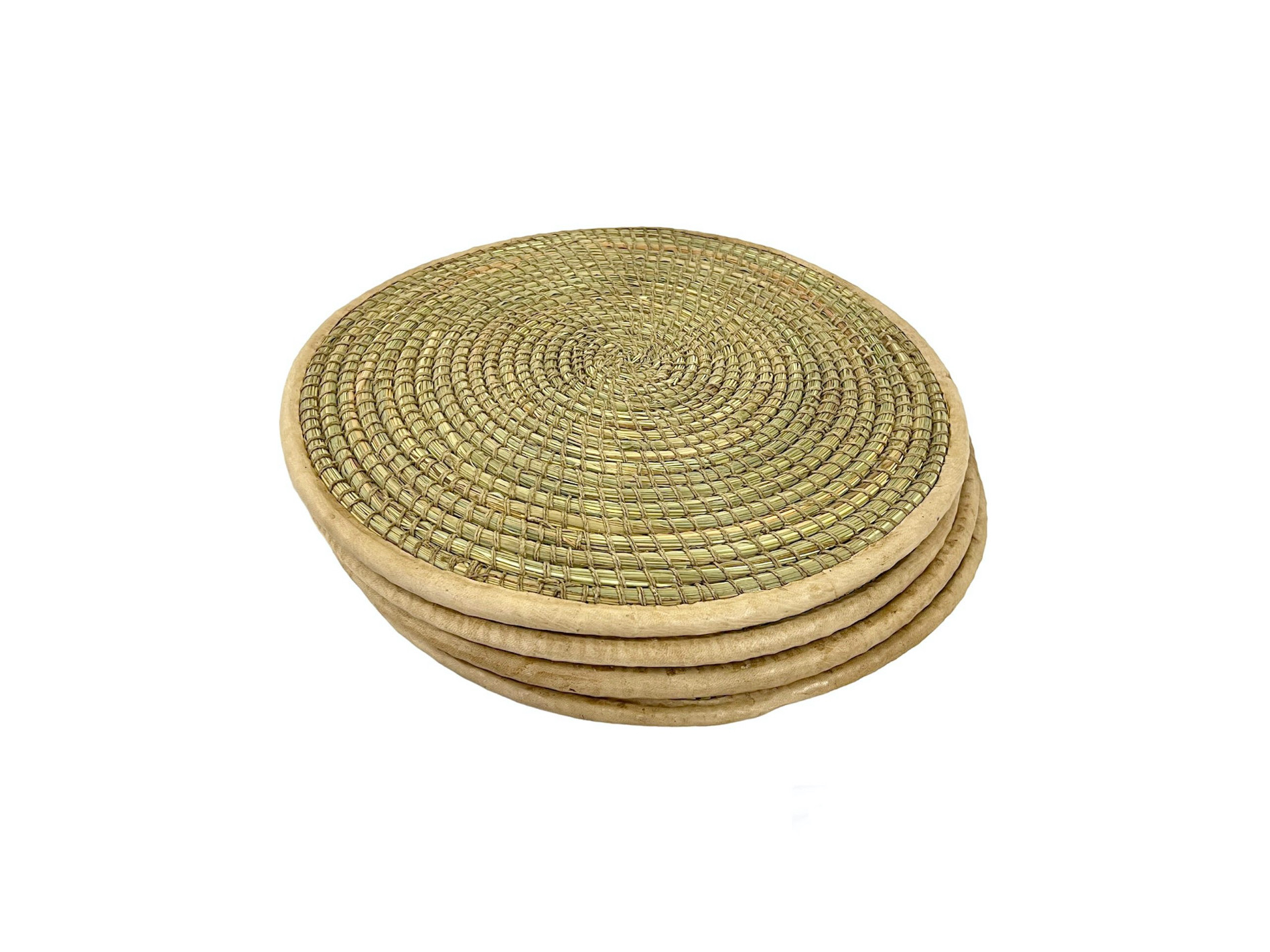 Add a touch of artisanal elegance to your table with this set of four handwoven placemats made from straw and wool. Their refined patterns and unique texture create a warm and authentic atmosphere in your home.