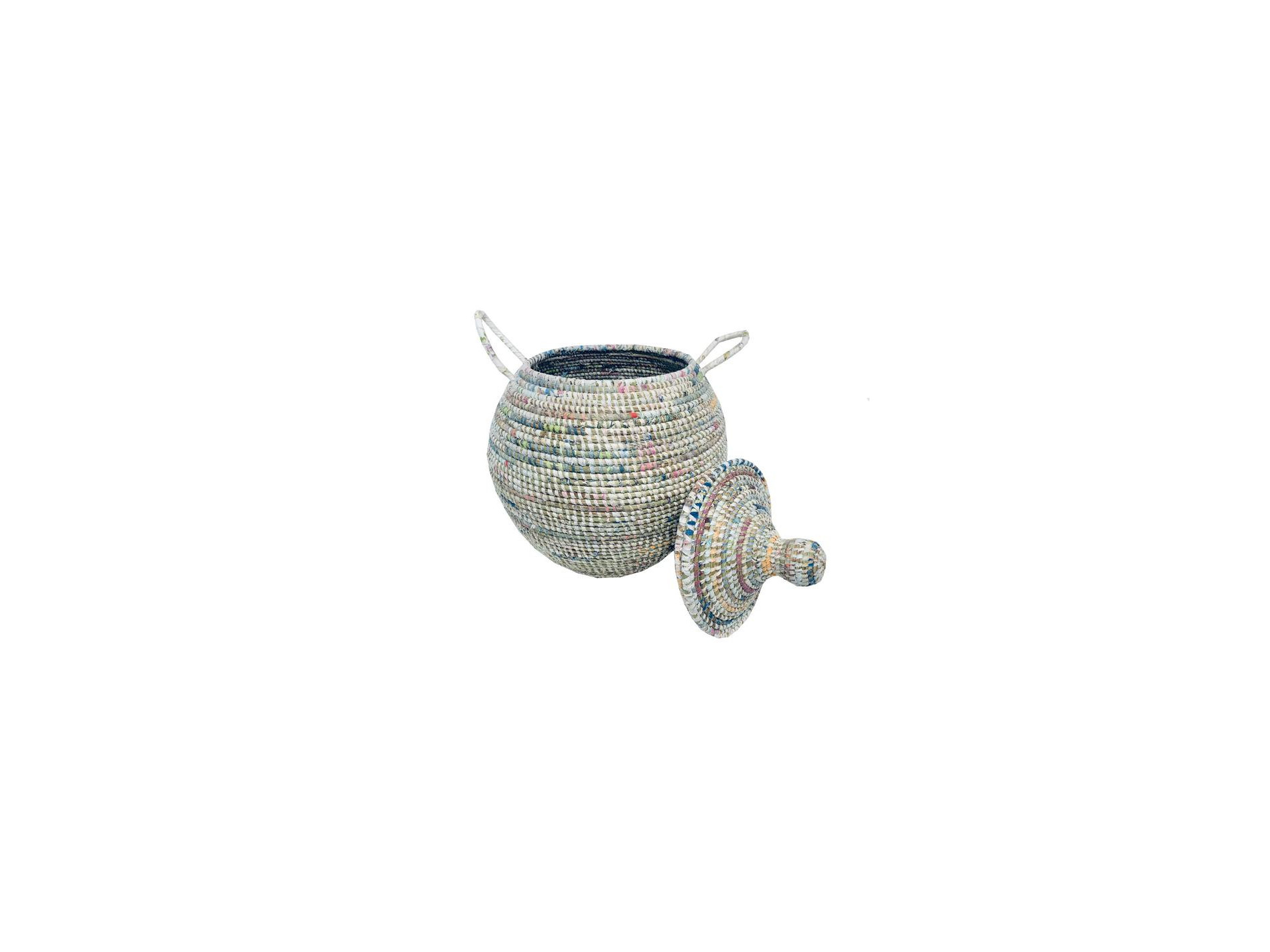 La forme particulière de la corbeille Doum est mise en valeur avec la paille naturelle et tissé avec des vieux draps collectés. A savoir, l'Afrique c'est 10 000 tonnes d'importations de fripe chaque année. Notre surconsommation d'habits a donné naissance à cette collection. Cette initiative écologique circulaire vise à réduire les déchets tout en créant des objets de décoration. Vous apprécierez l'esthétisme du produit et le tissage parfait du tissu ! Dotée d'une grande contenance, à vous maintenant de trouver quel usage vous assignerez à votre corbeille traditionnelle.
