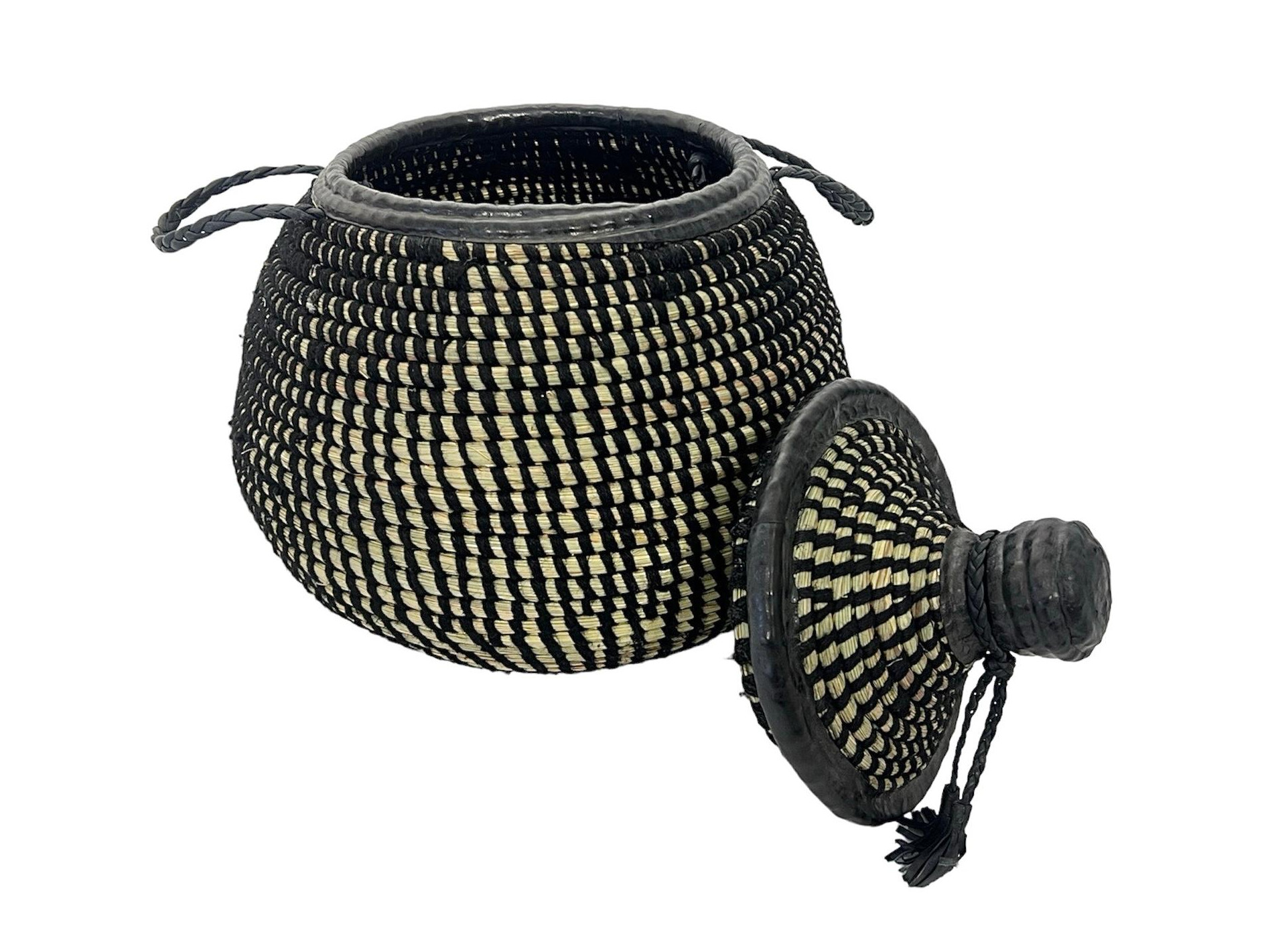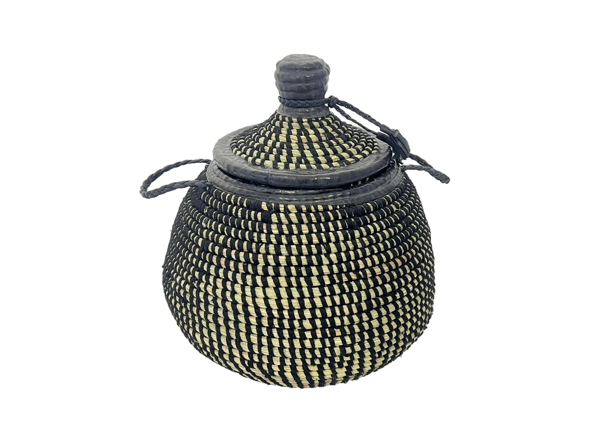 Ce panier en osier tressé à la main allie artisanat et élégance. Son design bicolore noir et naturel apporte une touche ethnique et authentique à votre intérieur. Doté d’un couvercle conique avec poignée tressée, il est idéal pour le rangement tout en servant d’objet décoratif. Parfait pour stocker linge, jouets ou accessoires, il s’intègre harmonieusement à tout type de décoration.